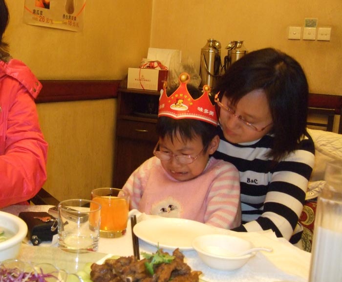 我的小女儿清清当时只有四岁多,她亲眼目睹了便衣警察绑架和抄家的情景。北京东城分局恶警从后面勒住我的脖子,我的头被勒的使劲向后仰着,脸仰望着暗黑暗黑的天空,我还是拼命的喊出了一声:“法轮大法好!”接着警察将黑头套套到我的头上,把我拖上了楼。小清清被吓惊了,她长长的尖叫了一声“妈妈──”凄厉的声音撕裂了阴沉的天空。当我回家后,看着家人给她拍的相片,她表情呆呆的,那么使人不忍。