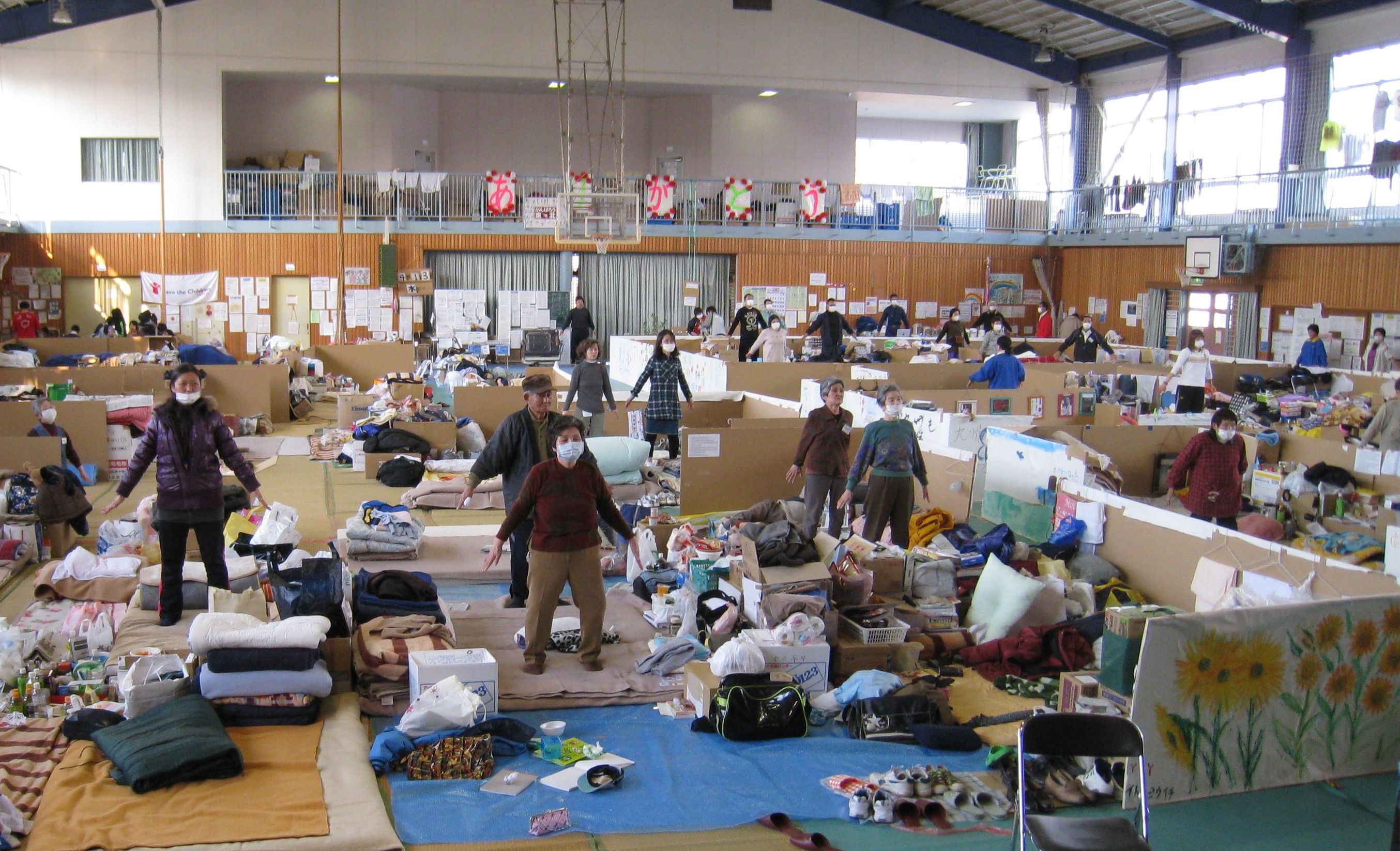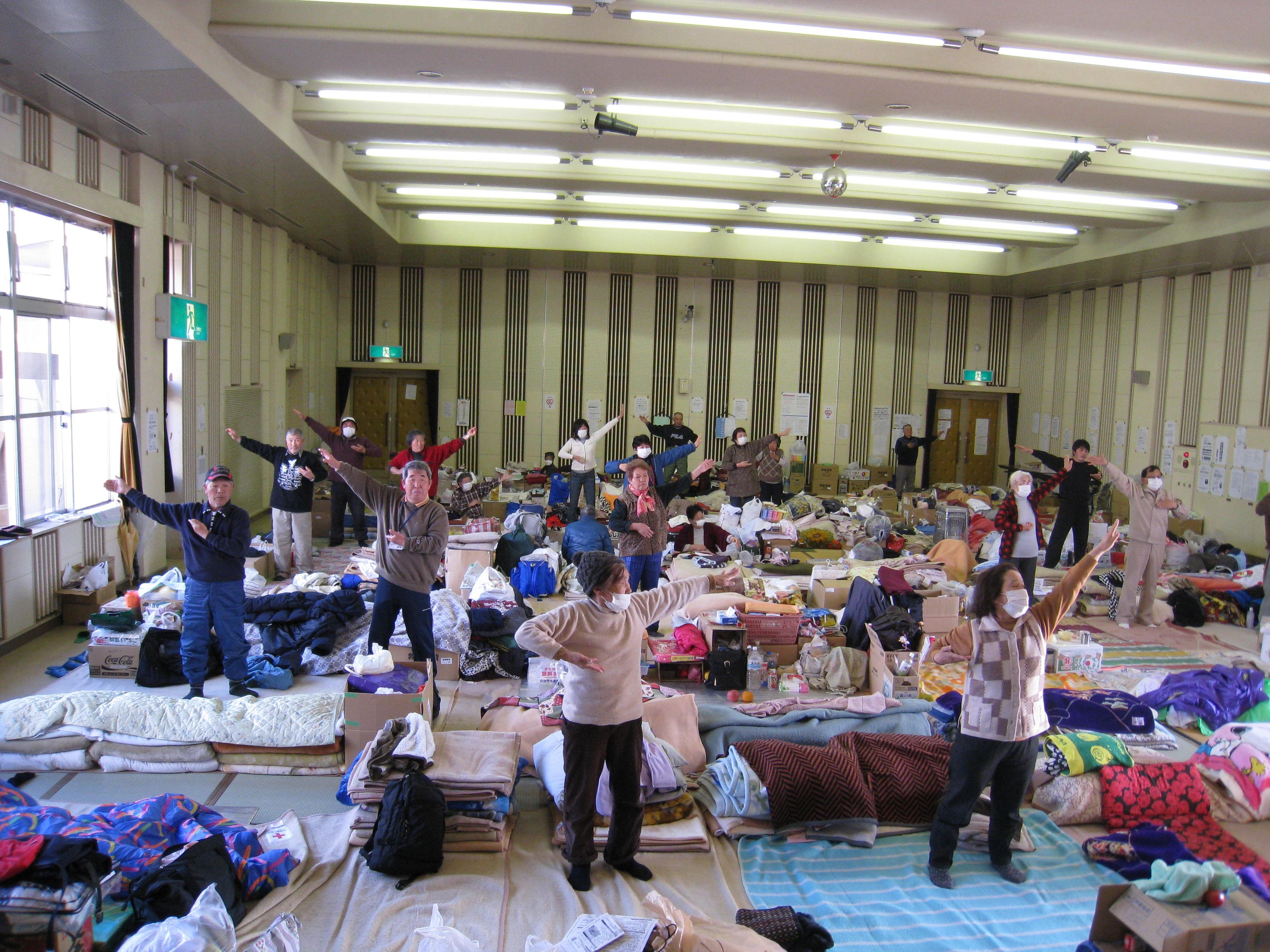 其中十名法轮功学员来到距离福岛第一核电站六十公里左右的须贺川市的一个避难所。这是一个空旷的室内体育中心,该处的灾民多来自核电站二十公里圈内的居民,至今仍无法解决的核电站危机令他们心情纠结。走进避难所,即感觉到空气中似乎弥漫着一种担忧的气氛。