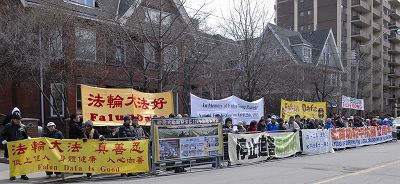 来自长春的法轮功学员王影,去年底十一月到加拿大多伦多。她因为坚持修炼法轮大法,曾遭受中共邪党三次拘留、一次监视居住、一次劳教的迫害。集会上,她讲述了自己在吉林省黑嘴子劳教所被恶警凶残折磨的事实。