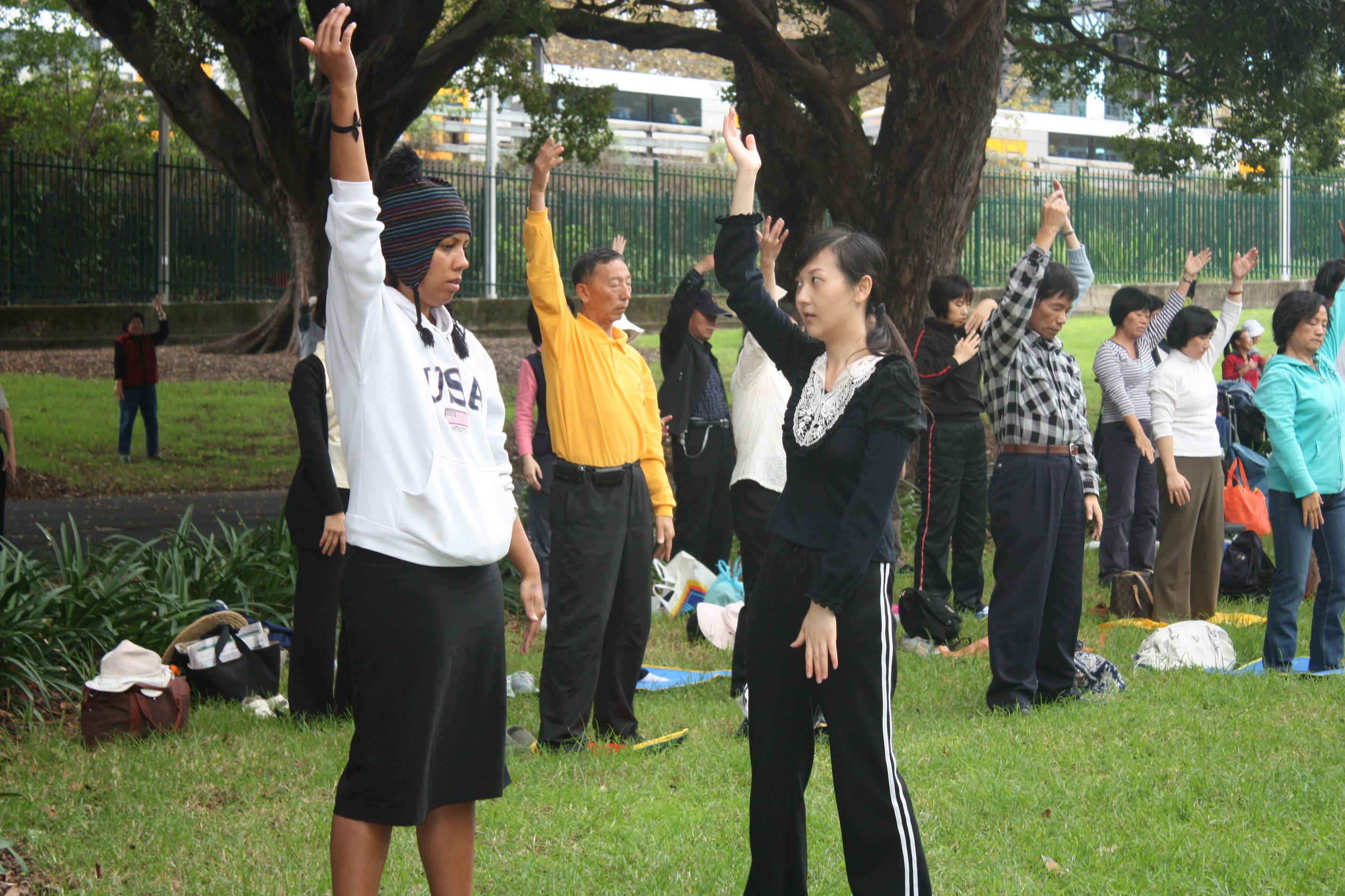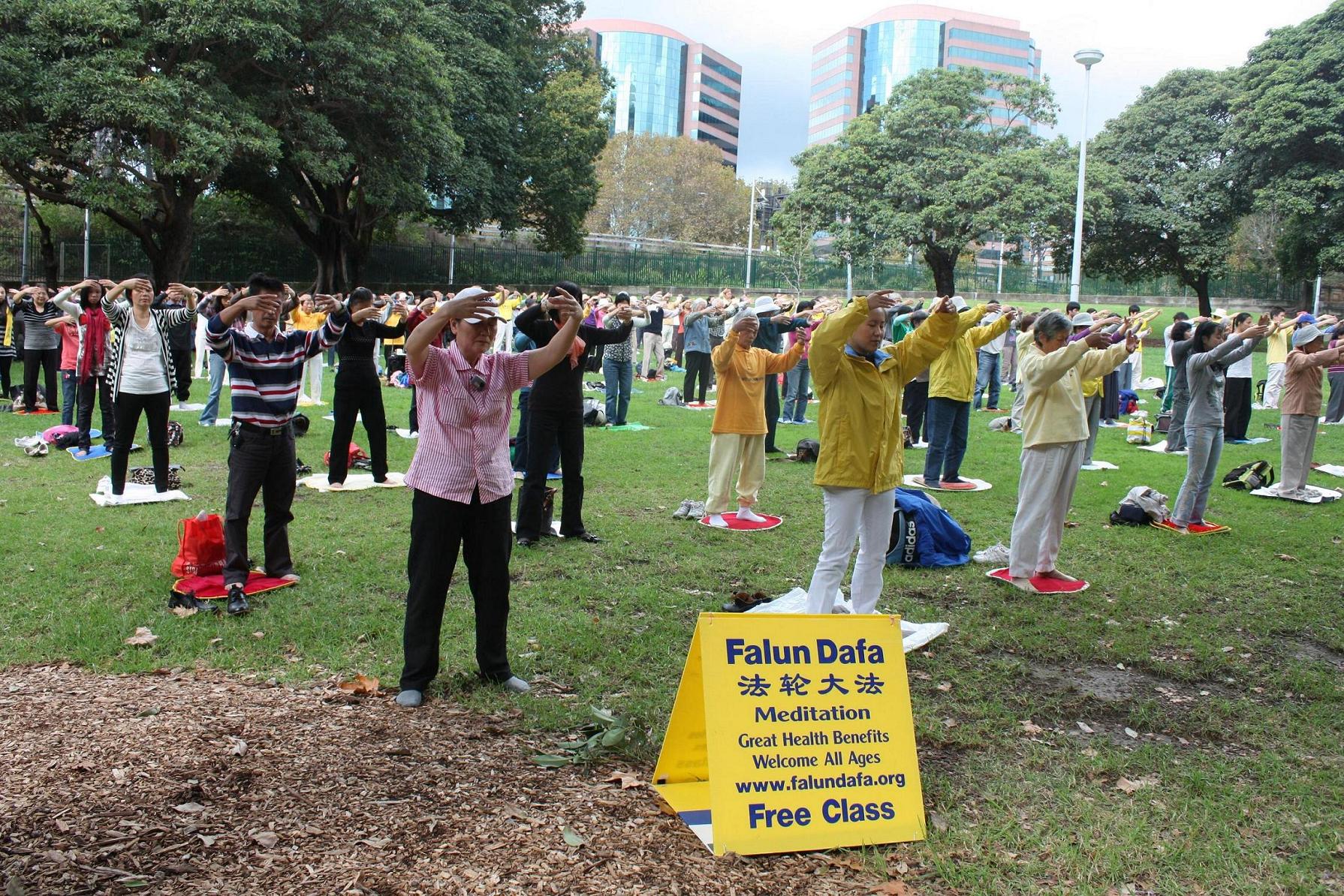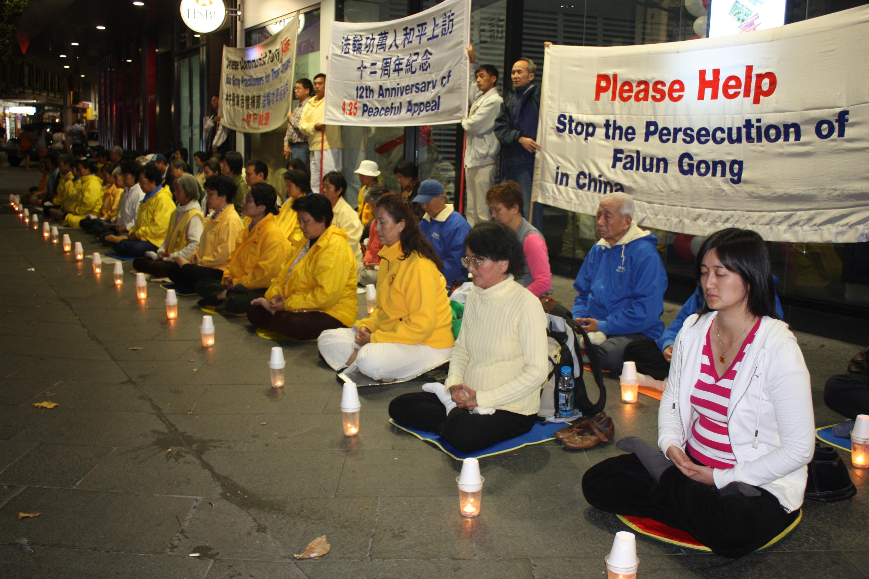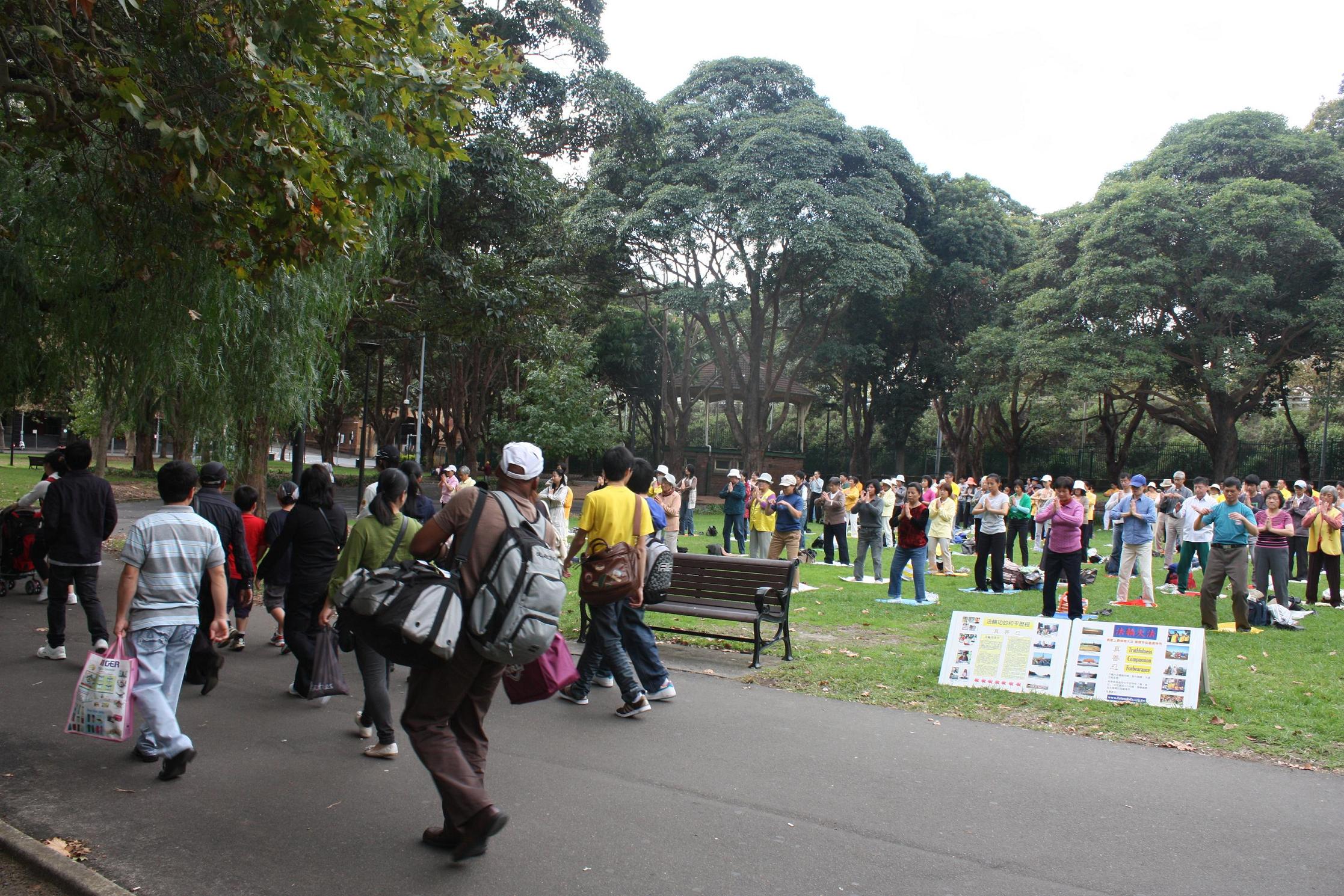 【明慧网二零一一年四月二十五日】(明慧记者蕴韵、华清澳洲悉尼报导)二零一一年四月二十四日中午,悉尼法轮功学员在市中心的拜莫尔公园(Belmore Park)集体大炼功,随后在唐人街举办真相长城活动,傍晚六点钟在唐人街举行烛光悼念,纪念十二年前上万名法轮功学员在北京信访办的和平上访,要求中共立即停止迫害法轮功。并呼吁澳洲政府、民众和国际社会了解法轮功真相,与法轮功学员一起制止迫害。