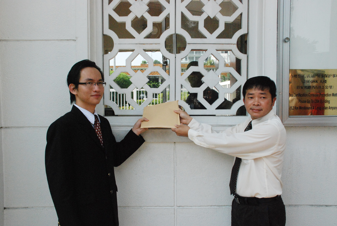 ![]() 法轮功学员递交抗议信给中共使馆 |