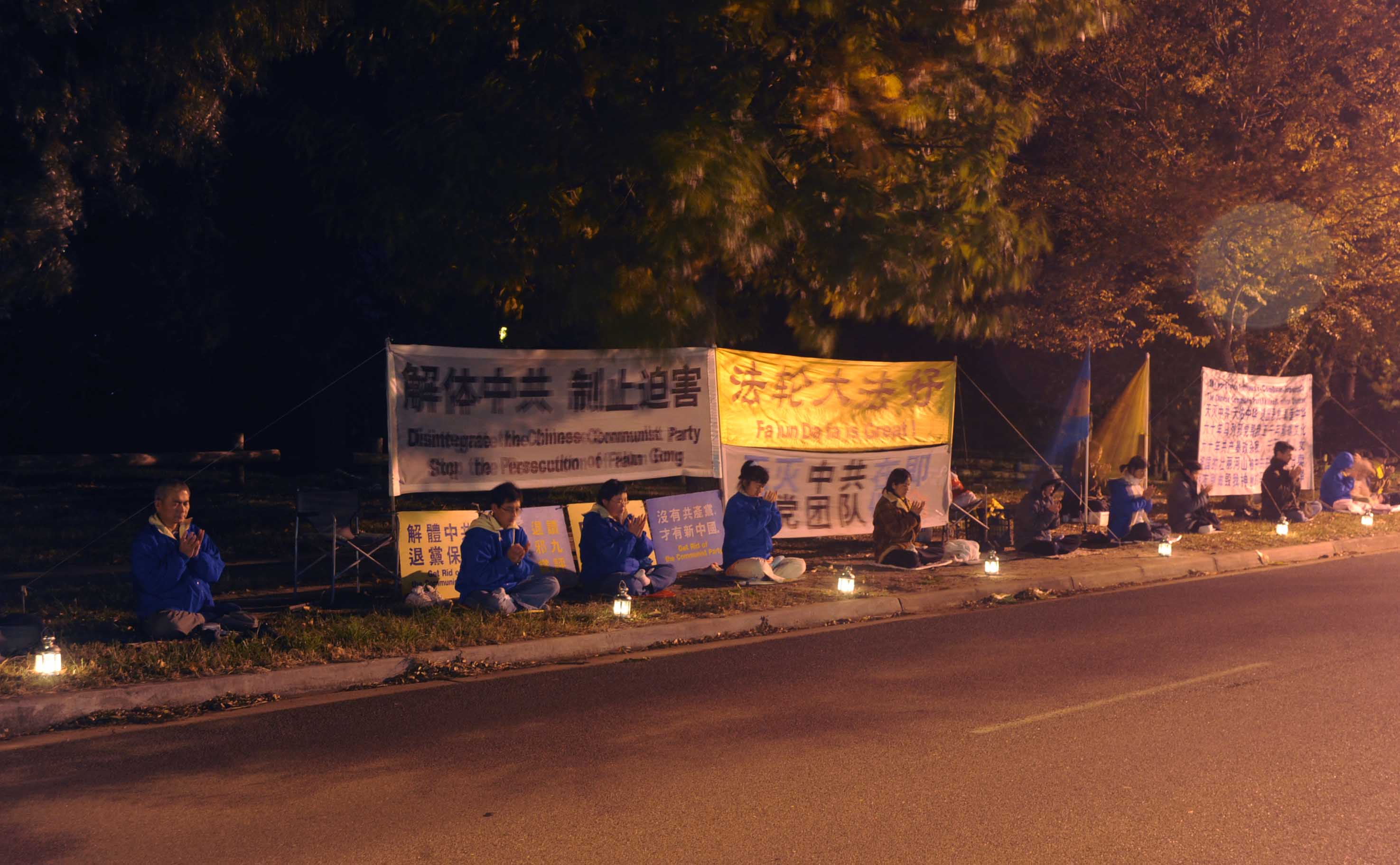 【明慧网二零一一年四月二十六日】(明慧记者华清澳洲报导)二零一一年四月二十五日晚,堪培拉法轮功学员在中国驻澳大利亚使馆对面点起盏盏烛光,纪念十二年前上万名法轮功学员在北京的和平上访,坚决要求中共立即停止对法轮功的迫害