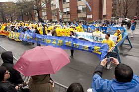 【明慧网二零一一年四月二十六日】(明慧记者采菊纽约报道)二零一一年四月二十三日下午,千余名法轮功学员和支持民众在纽约法拉盛,举行了声势浩大的游行,游行之后又召开了盛大集会,纪念法轮功学员一九九九年四·二五北京中南海和平请愿十二周年。