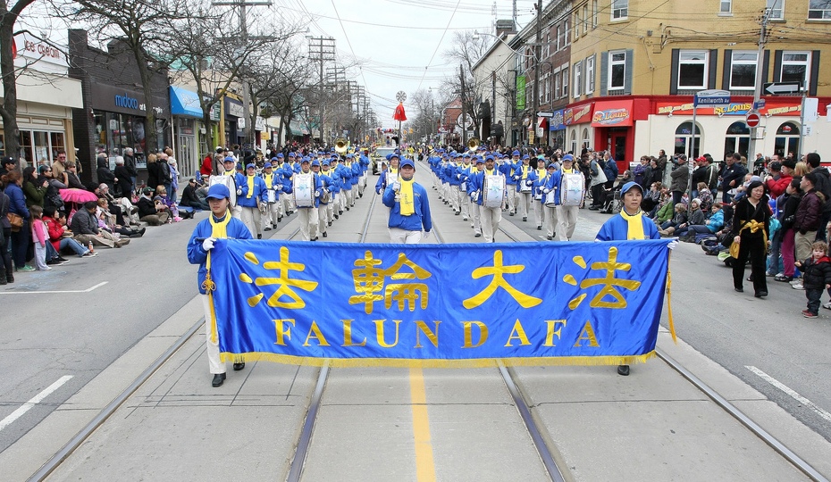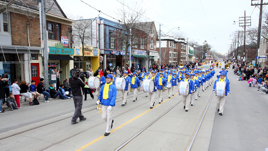 【明慧网二零一一年四月二十七日】(明慧记者章韵多伦多报道)二零一一年四月二十四日,多伦多天国乐团参加了加拿大多伦多一年一度的复活节游行中,受到观众的热烈欢迎。这是他们连续第四年应邀参加该游行。