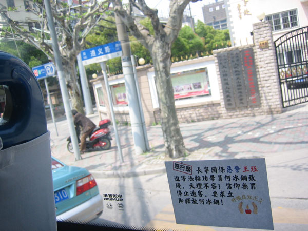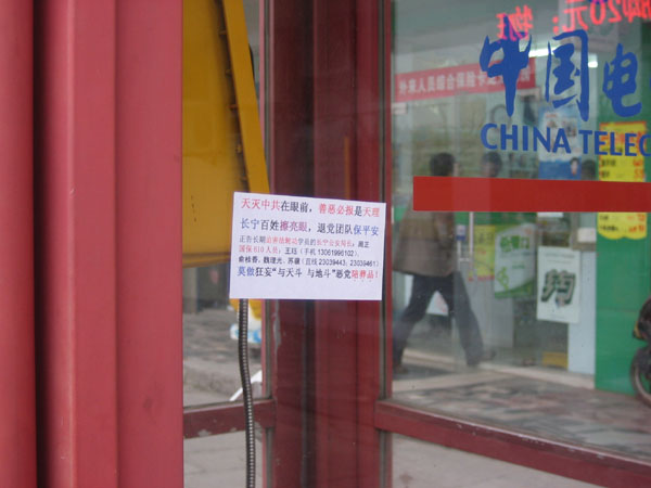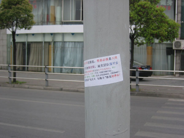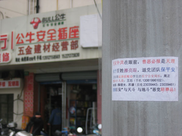 的法轮功学员,长宁区出现了多处真相粘贴。