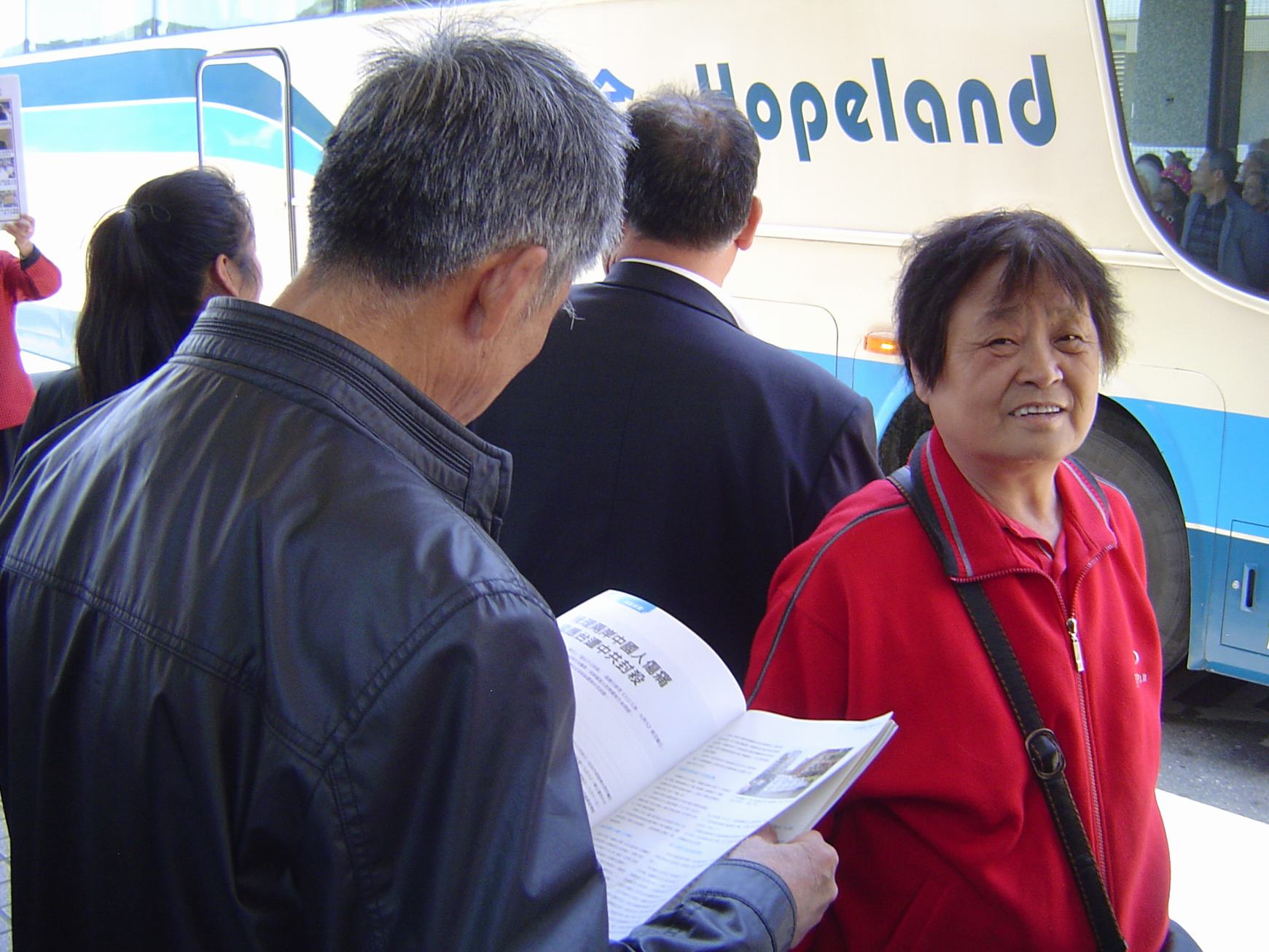 另一对林姓学员夫妇,分别是七十八岁与七十六岁,他们从二零零二年开始修炼法轮功,鉴于身心受益,也是坚持每天来此地向大陆游客讲真相。林太太说许多中国游客最常提出的问题就是:你们一天拿多少工资?林太太和颜悦色地告诉他们,这里所有的学员都是志愿的义工,每个人利用自身便利的条件来此地,全然不为自己,而是为了让中国人明白真相而来。