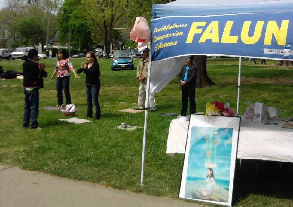 ![]() 有缘人在加州首府地球日上当场学炼法轮功 |