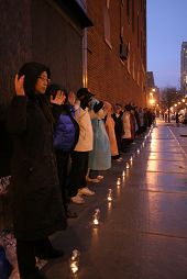 芝加哥法轮功学员在中领馆前以烛光守夜纪念“四•二五”