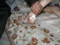 马长青的妻子住院花掉五万多元的医疗费(多数是借的),已经取借无门了,最后马长青无钱给妻子医治,只好将穆春波抬回家硬挺,穆春波躺在床上不省人事,靠吸管引流进食,还在用切开的喉管引流痰液,后背、臀部、双脚褥疮严重,好端端的一个好人被迫害成这个样子。昏迷不醒四个多月,终于三月二十九日含冤离世。亲戚邻居都说邪党警察太可恨了,简直就是草菅人命。