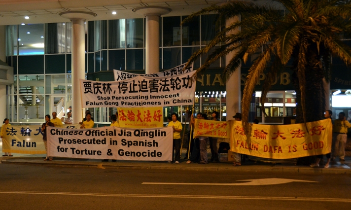 ![]() 法轮功学员在珀斯喜来登酒店正门对面抗议贾庆林迫害法轮功 |