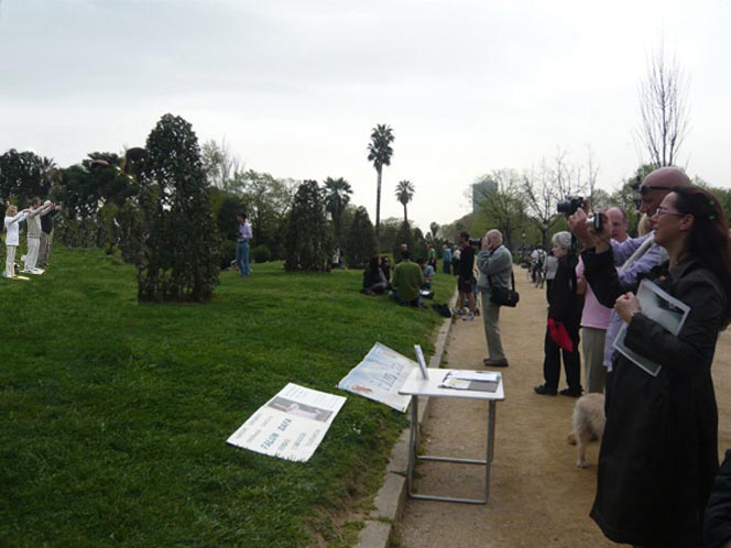 法轮功学员在西班牙巴塞罗那凯旋门公园发正念