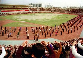 【明慧网二零一一年五月十日】一九九八年五月三日上午,风和日丽,黑龙江省大庆市万余名大法弟子在大庆体育场举行了盛大的炼功活动。参加此次炼功活动的大法弟子,来自大庆市的四面八方。其中,上至七、八十岁的老年弟子,下至几岁的小大法弟子,均表现出了极高的热情和祥和心态。