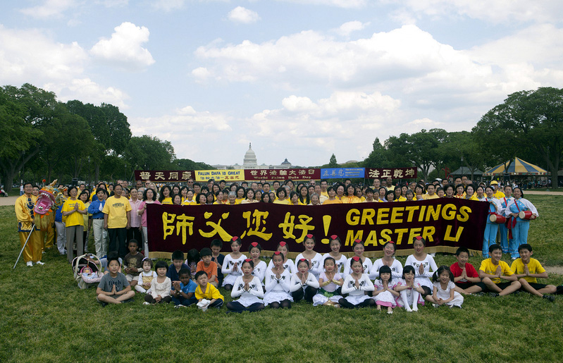 ![]() 大华府地区部份法轮功学员在美国国家广场草坪上举办庆祝活动,欢庆世界法轮大法日,祝师父生日快乐。 |