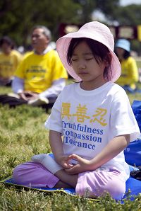 ![]() 庆祝世界法轮大法日,大华府地区部份法轮功学员在美国国家广场草坪上集体炼功。 |