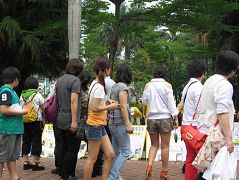 ![]() 台北法轮功学员在士林官邸拉横幅讲清真相,路过的旅客高喊“法轮大法好!” |