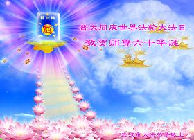 - 大陆大法弟子贺师尊华诞暨法轮大法日(267地)- 每年的5月13日,世界各地的法轮大法弟子,都向明慧网寄来贺卡贺词,恭贺师尊华诞,并庆祝“世界法轮大法日”。