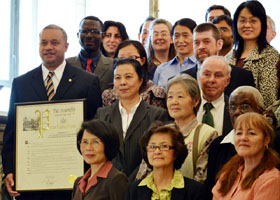 - 纽约州众议员:正义终会战胜邪恶- 为表彰法轮大法为纽约州作出的杰出贡献,美国纽约州众议员艾里克•史蒂文森(Eric Stevenson)在二零一一年五月十日的州众议会上宣读褒奖,表彰“法轮大法月”和“二零一一年五月十三日---世界法轮大法日”,并邀请法轮大法学员出席议会,接受褒奖。州众议院大厅内,议员们纷纷鼓掌表示赞赏。