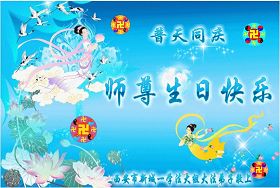 - 大陆大法弟子贺师尊华诞暨法轮大法日(300地)- 每年的5月13日,世界各地的法轮大法弟子,都向明慧网寄来贺卡贺词,恭贺师尊华诞,并庆祝“世界法轮大法日”。