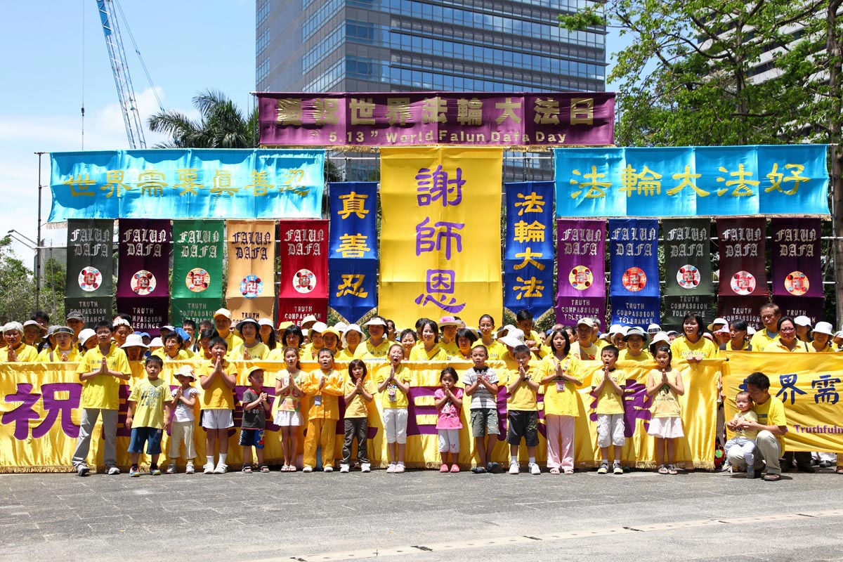 二零一一年五月十日,三百多名在香港的中外法轮功学员庆祝世界法轮大法日,同时恭贺师尊六十华诞。