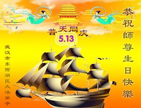 - 华中大法弟子贺师尊华诞暨法轮大法日(246地)- 每年的5月13日,世界各地的法轮大法弟子,都向明慧网寄来贺卡贺词,恭贺师尊华诞,并庆祝“世界法轮大法日”。