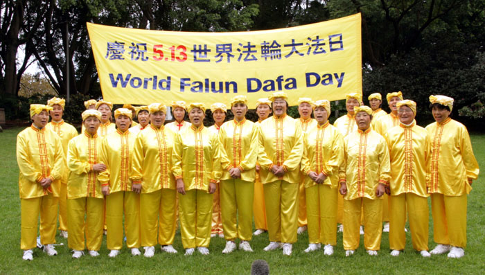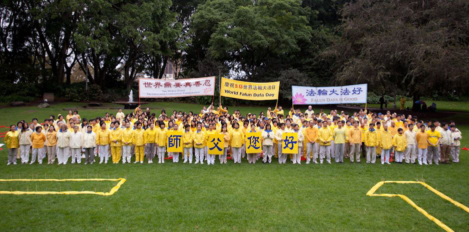 ![]() 庆祝“世界法轮大法日”,悉尼法轮功学员集体炼功。 |
