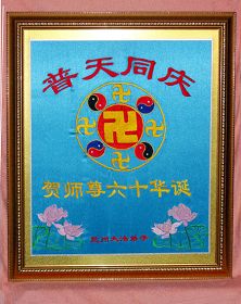 郑州班结束之时,许多学员献锦旗,最大的一面锦旗上写着一个大大的“佛”字,系由湖北学员敬献。