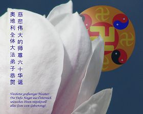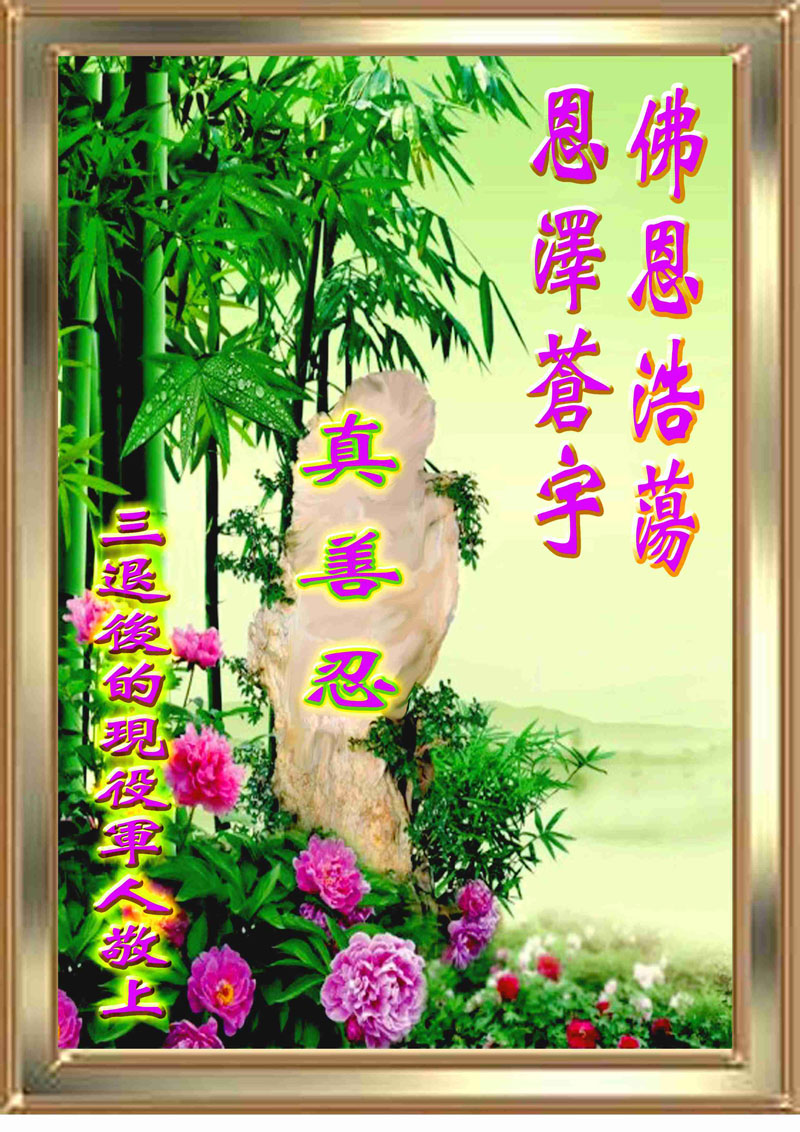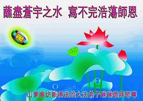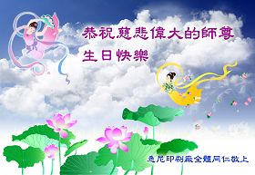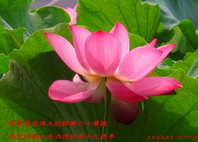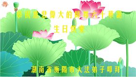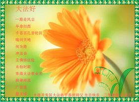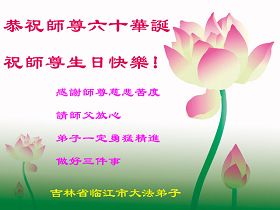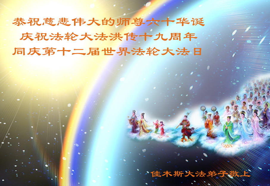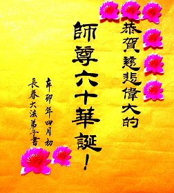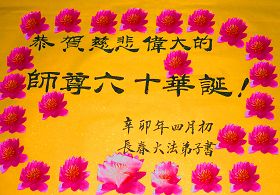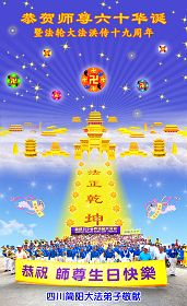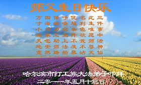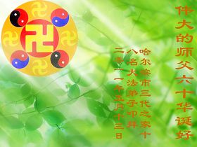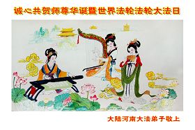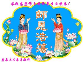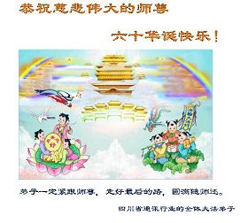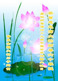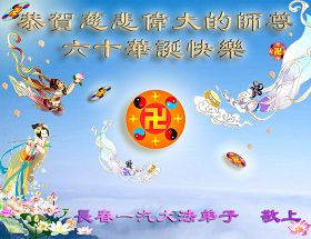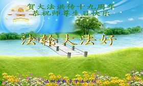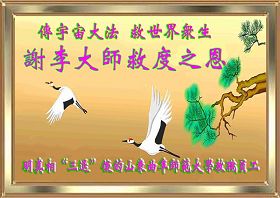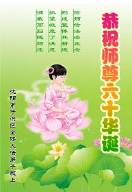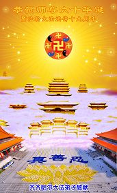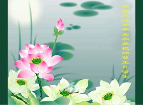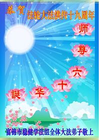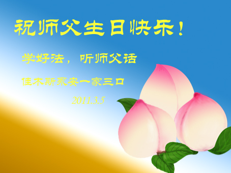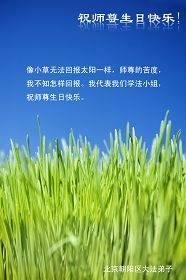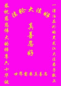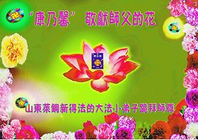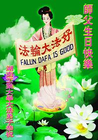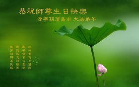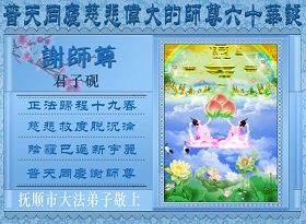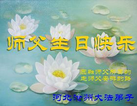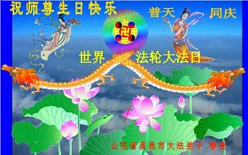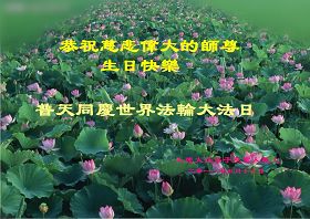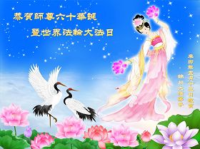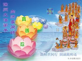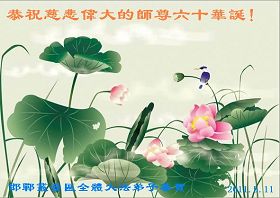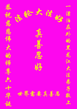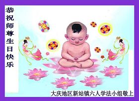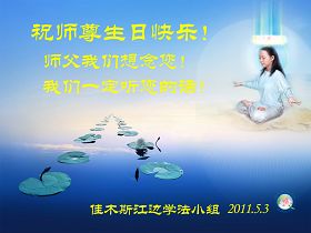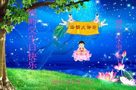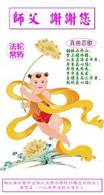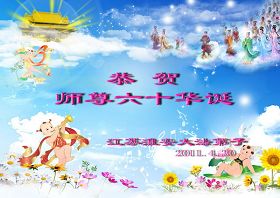 一天,我梦见师父,高高大大的,坐在那里,慈祥的微笑着,我单腿跪靠在身边,仰望着,就觉的师父是自己的父亲,自己是师父的孩子。这是我一生中真正的老师啊!我很兴奋,只知道好,就是百分之百相信师父所讲的一切。我明白了:人来到世间是修炼的,不是来过常人生活的;修炼是不断的去执着心;守德、修心性、修真、善、忍;这位老师非同一般,我心想:现在道德急速的大滑坡,老师是来更新人类的。
