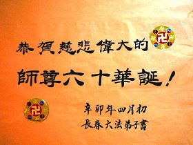 学习班结束时,主办单位的负责人,在大会上激动的对全体学员说:“第一天上午讲法,麦克风的声音没有调好,学员有时听不清楚;到了下午,麦克风的声音就非常清晰了,这是你们师父在中午休息时间调好了的。你们的师父那天中午没有吃饭,没有休息,也没有告诉我们,自己默默的做了本应该是我们做的事。”