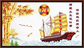 二零一一年新年来到的时候,窗外辞旧迎新的震天动地的炮竹声中,我看到一种神奇的景象:一艘度人的法船竖立了起来,犹如一架天梯,直升向云端。