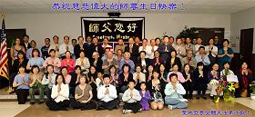 学习班结束了,学员要求与师父一块合影。师父穿一套灰色的运动衫,站在学员中间,特别高大。大家自动的分成小组,几个人、十几个人、几十个人,一拨拨的与师父合影留念。一会儿这边喊:“老师,请您跟我们合影!”一会儿那边喊:“老师,到我们这里来嘛!” 我和同行的学员挎个相机,眼含幸福的泪花,一直跟着师父到这组、到那组,根本就忘了给照相,最后剩下的还没有照的学员,跟师父一起合影,站的密密麻麻的。合影中,不停的有学员喊:“我们的老师”,“我们的老师”。最后全体学员从心底发出一个共同的声音:“我们大家的老师!”学员与师父合影持续了很长时间。合影后,学员争先恐后的请师父签名,师父一直站在那里,微笑着一个一个耐心的签。