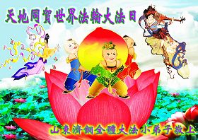 带功报告会上,师父给学员下法轮,要求大家伸出手来,掌心朝上。有人兴奋的叫了起来:我看见了,看见了!看见了彩色的轮子在手心转;有的说象个球似的,有的人感到手心发热,也有的感到手心发麻,还有的看到法轮布满了礼堂的整个空间,法轮落在了学员的手上、肚子上、头上无处不有。整个会场一片惊叹之声,无不见证了大法的神奇。