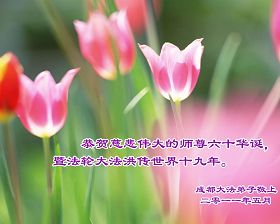 - 大陆大法弟子贺师尊华诞暨法轮大法日(33)- 5月13日是法轮功创始人李洪志师父的华诞,也是世界法轮大法日。