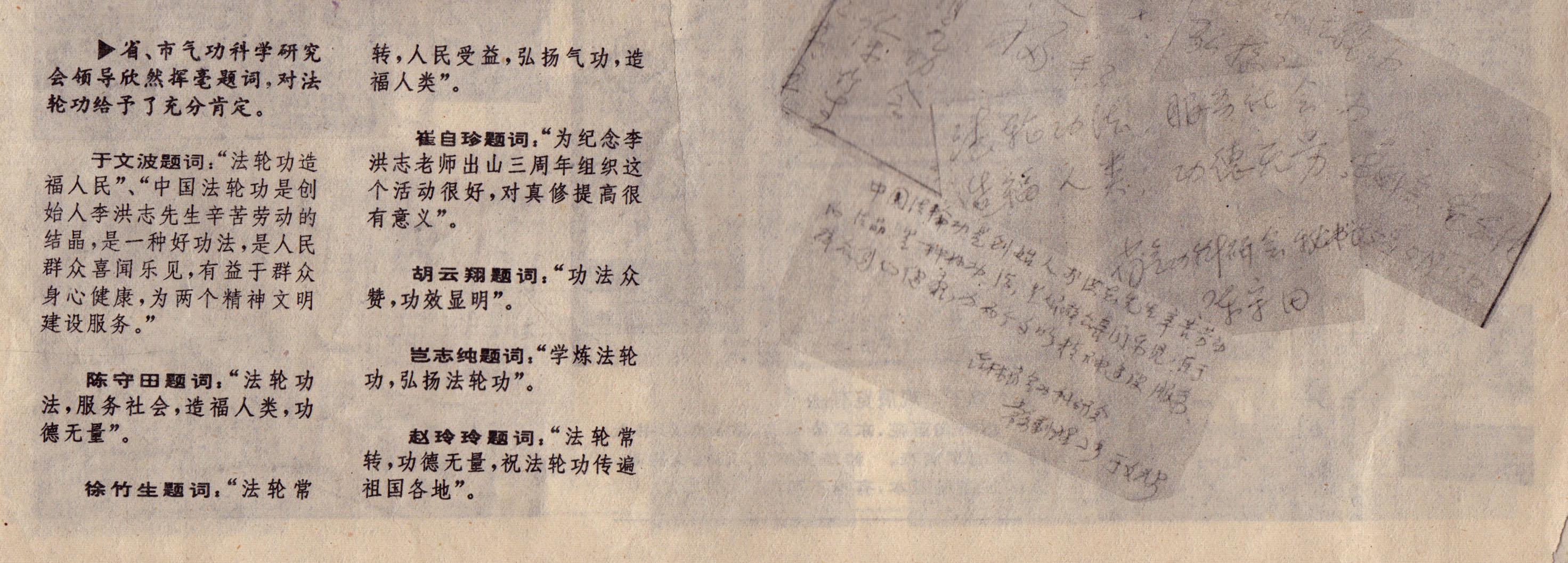 ![]() 《法轮大法在长春》(内部资料 专刊 )一九九五年七月十八日第六期第四版一角 |