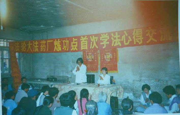 1999年7月20日前,在双城法轮功学员组织召开的修炼切磋交流会现场拍摄到的法轮