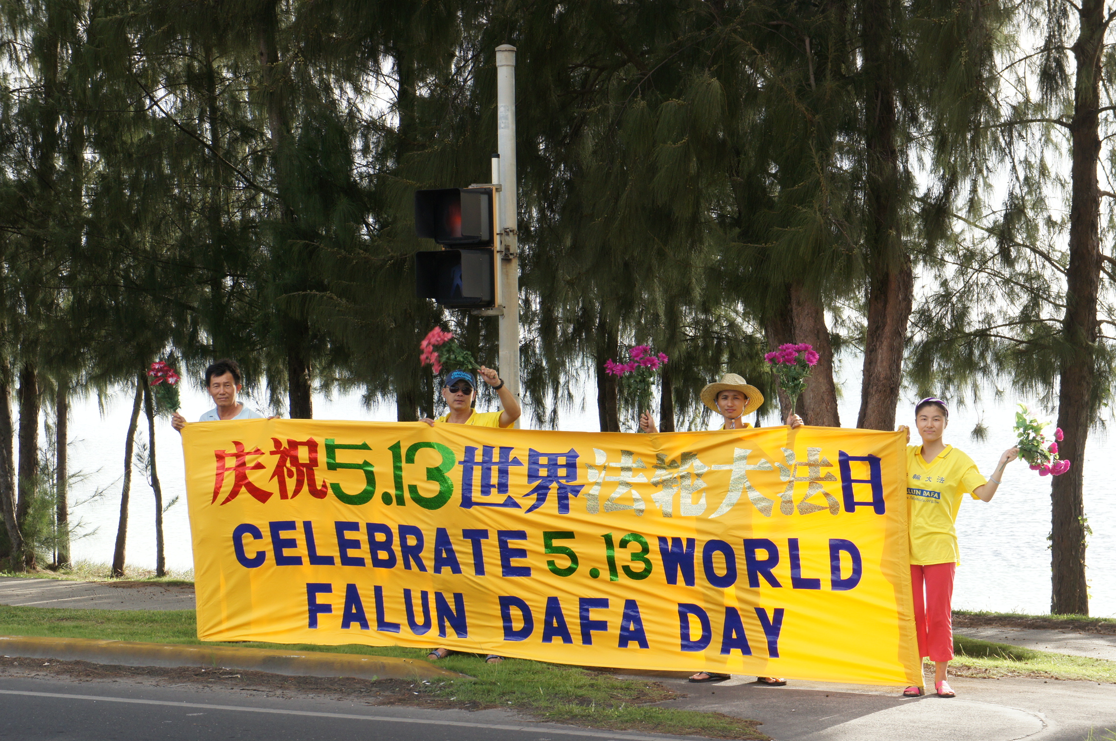 【明慧网二零一一年五月十四日】美国塞班岛法轮大法弟子为庆祝第十二届“世界法轮大法日”及慈悲伟大的师尊李洪志先生六十华诞,于二零一一年五月十二日及五月十三日在塞班岛不同区域举办庆祝活动。