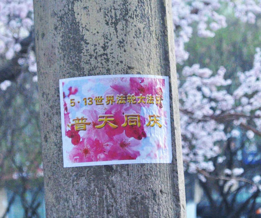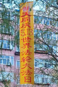 黑龙江某地街头庆祝“世界法轮大法日”条幅