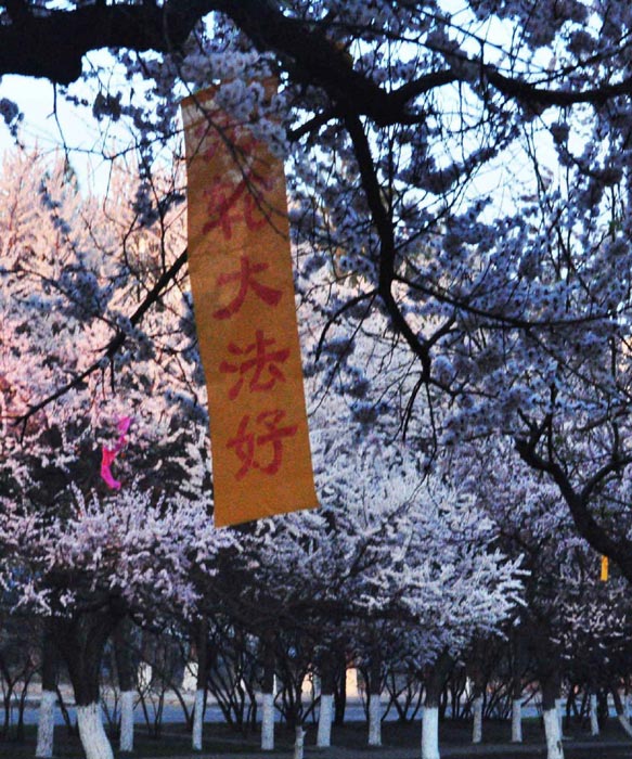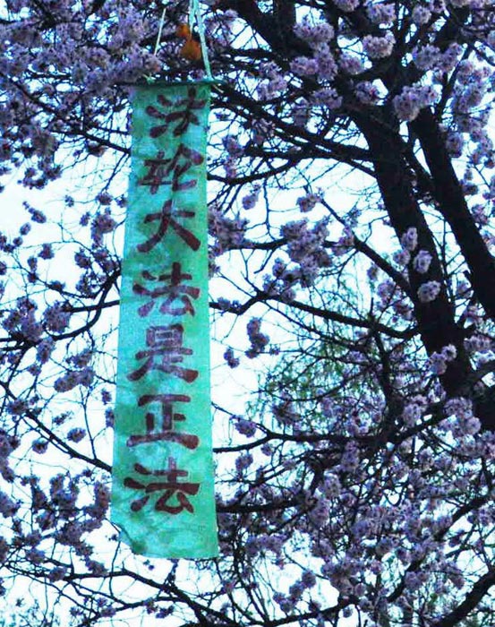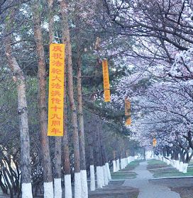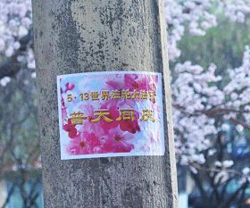 通讯员黑龙江报道)以下是出现在黑龙江某地街头的庆祝“世界法轮大法日”的真相条幅。