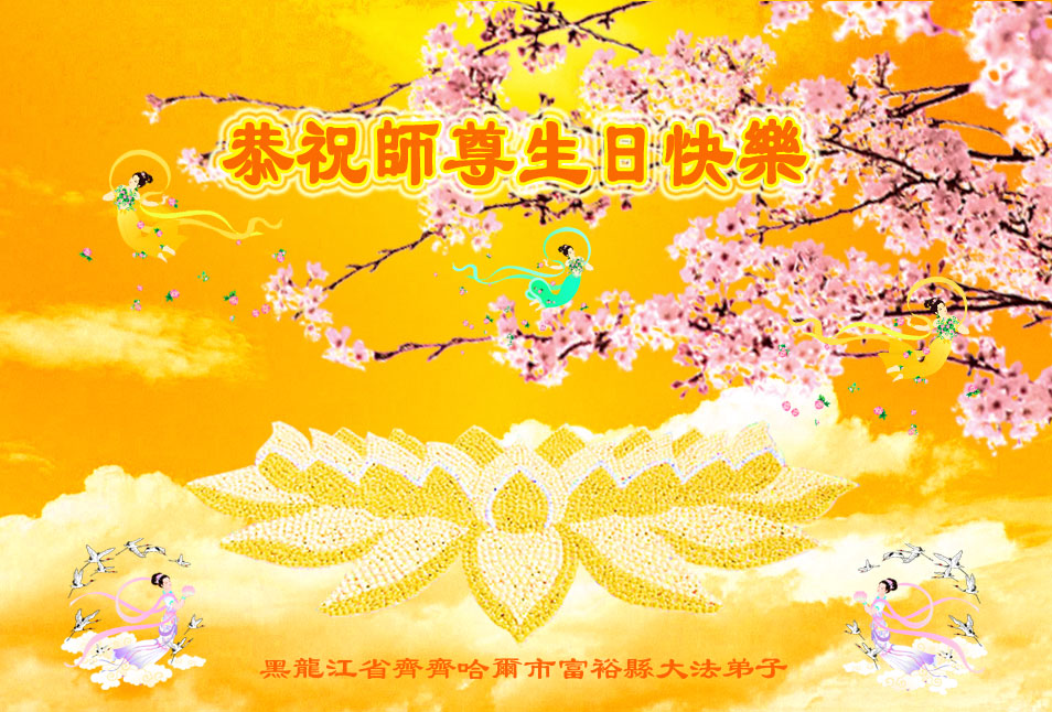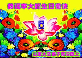 山东省省级机关全体大法弟子向师父叩拜:“山东省省级机关全体大法弟子叩拜恭祝慈悲伟大的师尊生日快乐!在世界法轮大法日来临之际向慈悲伟大苦度我们的师父问好!感谢师父普度众生,衷心感谢师父时刻看护和点悟我们!在回归的路上,在助师世间行的路上,我们将全力救度众生,感谢师尊慈悲救度之恩!”