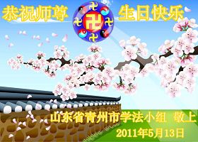 【明慧网二零一一年五月十五日】(明慧网通讯员大陆综合报道)五月十三日是法轮功创始人李洪志大师六十岁华诞,也是第十二届“世界法轮大法日”,每年的五月十三日,全球各地的法轮功学员、从法轮功中受益和明白真相的各界人士,都会以各种方式表达他们对李大师的思念和崇敬之情。即使在法轮功仍然遭受中共迫害的中国大陆,千千万万的法轮功学员和有正义感的世人们,也都纷纷用诗歌、贺辞、贺卡等方式,遥寄对李洪志大师的恭贺与思念。今年五月十二日、十三日两天,突破中共的网络封锁,在明慧网发表的来自大陆的贺辞、贺卡、贺信已经至少有八千二百三十八份之多,而五月十四日,又有更多贺辞、贺卡在明慧网发表。