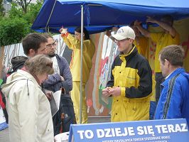 ![]() 波兰民众观看法轮功功法演示 | ![]() 路人仔细阅读真相资料 |