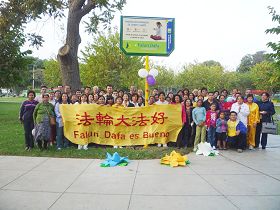 一个月前,今年上任的新市长通知公园不准悬挂横幅。法轮功学员得知后,直接与新上任的市长见面讲真相,秘鲁西人学员与新市长谈什么是法轮功,向市长倾诉自己得法后身心健康、家庭和睦的体会,并告诉市长先生,他的前任市长曾向佛学会的负责人承诺在公园的地图上标示大法炼功点的位置,因为某地方的疏忽没画上,所以允许法轮功炼功团体悬挂横幅到至今的原因。新市长颇有兴趣地看了法轮功学员几年来一些活动的相片后,主动提出市政厅要为法轮功炼功点专设一个固定的炼功标示牌,并承诺在公园的公共设施地图标示牌上添加法轮大法炼功点的位置。