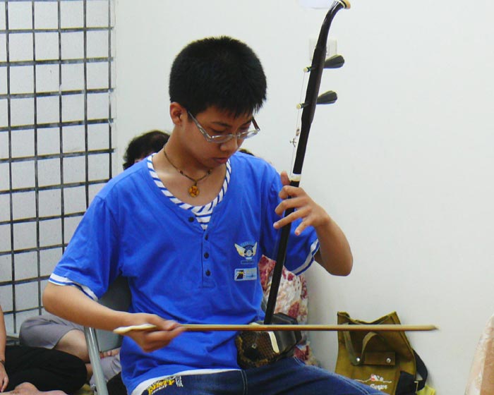 '少年弟子拉二胡,颂赞法轮大法好'