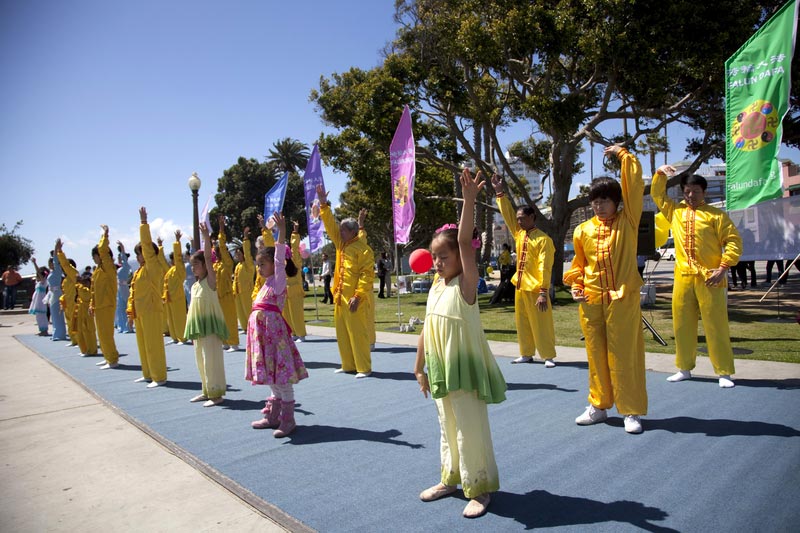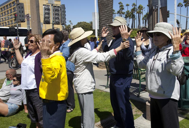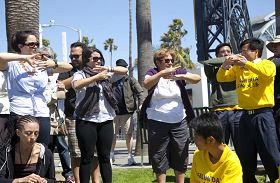 ![]() 南加法轮功学员在圣塔莫尼卡码头集体炼功。 |