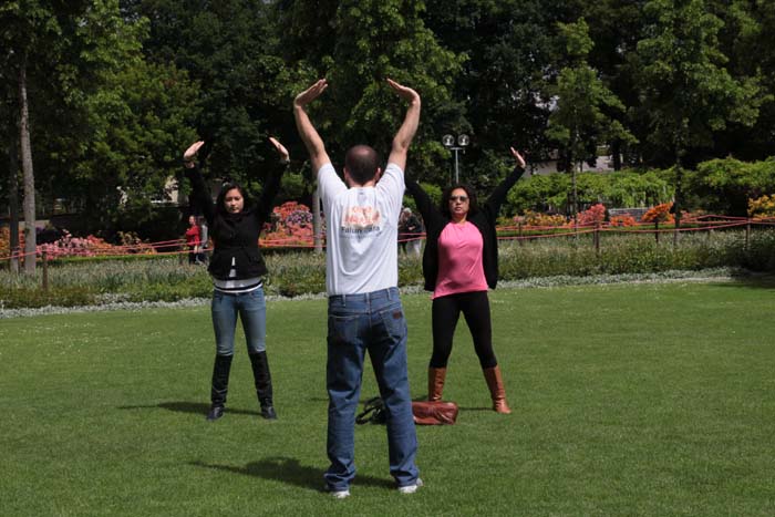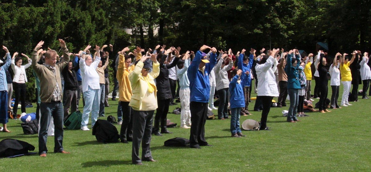 法轮功学员在瑞士首都伯尔尼玫瑰园集体炼功