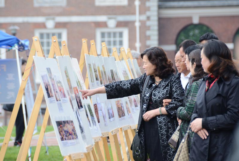 ![]() 参观自由钟的游人纷纷驻足真相展板前,了解法轮功和法轮功在中国大陆受迫害的情况 |