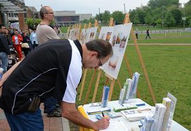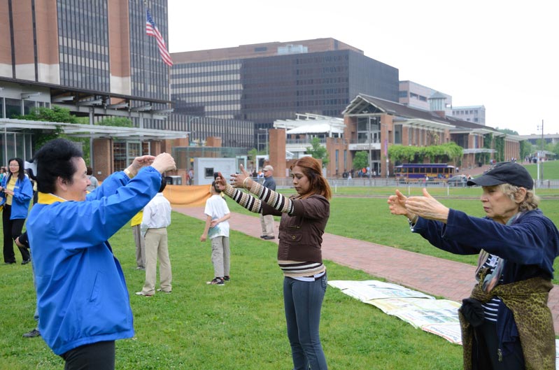 费城是美国第一个首都,美国独立的第一声钟声于一七七六年在这里响起。自由钟所在地的独立广场是美国具有历史意义的地标,也是美国国家公园。这里每天云集了来自世界各地的参观者,其中包括成群结队从中国大陆来的游客。当天,法轮功学员们以集体炼功、分享修炼心得、真相图片展、分发真相资料、文艺演出、书法、教授叠纸莲花等多种轻松愉快的形式向游人展示了法轮大法的美好及在世界各地传播的盛况,吸引了众多民众驻足观看,以了解法轮功。