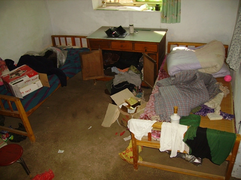恶警抄冯文珍家时,这些人把几间屋子翻了个底朝天,被子、衣服扔的到处都是。儿媳陪送的电视机、影碟机均被掠走,藏在枕头里的一千多元钱也被翻了出来装进了恶人的腰包。两张存折被他们看了看没钱又扔到了地上。