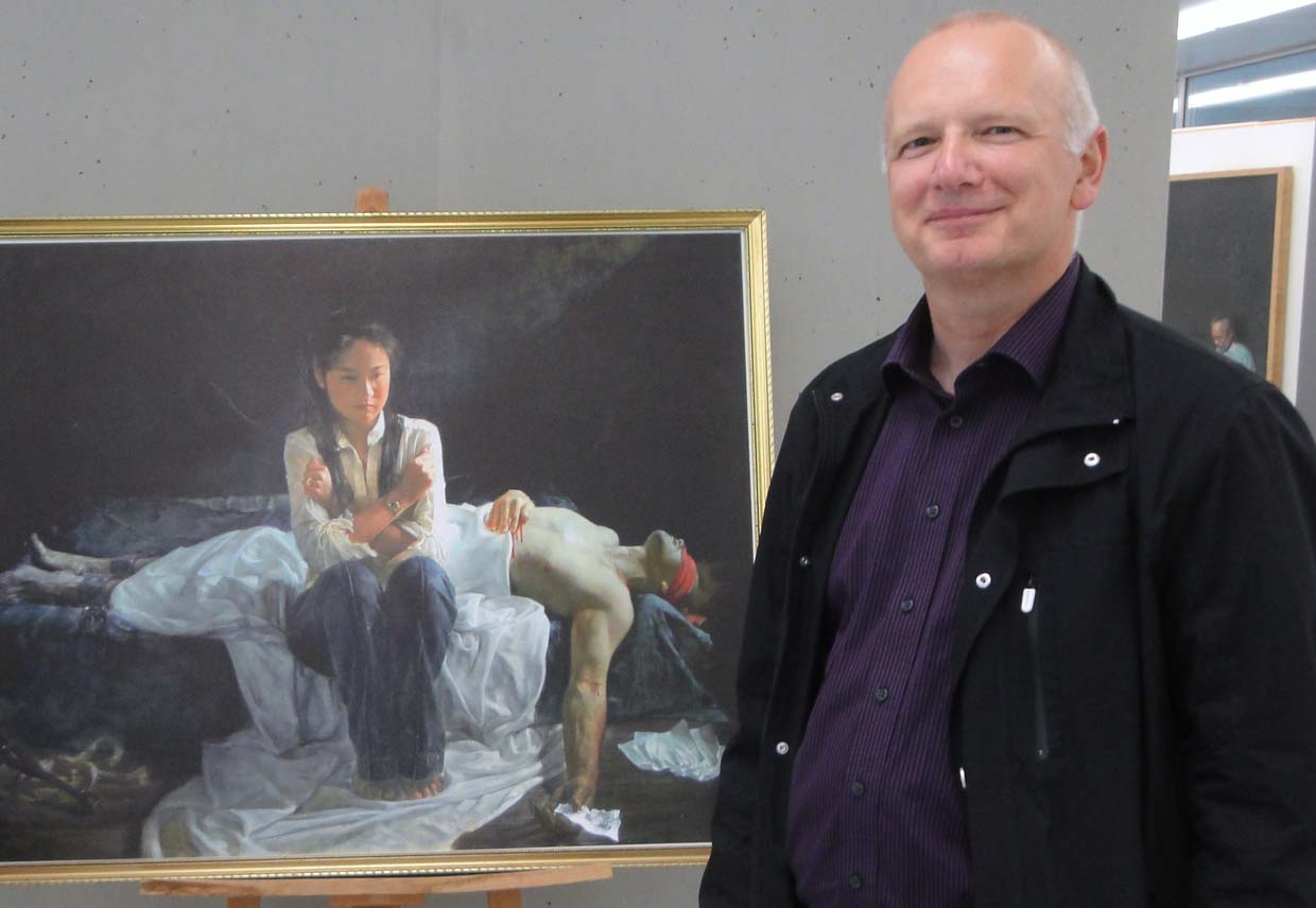 ![]() 福劳恩费尔德市外事处主任、马库斯•库特先生与画作合影 |