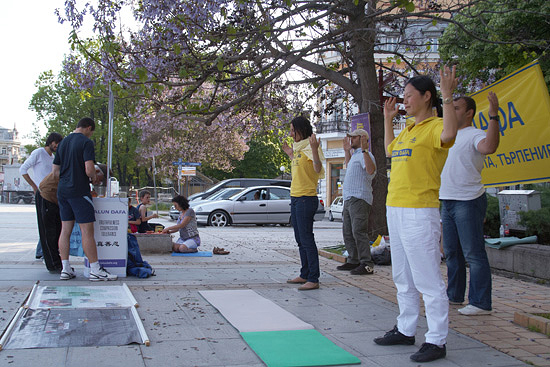 还有一名市民表示他是从城市的另一边过来听真相的,更多世人表示他们要将收到的传单带回家去告诉家人。傍晚,学员们点燃了一百支蜡烛,摆出保加利亚文的“法轮大法”字型。