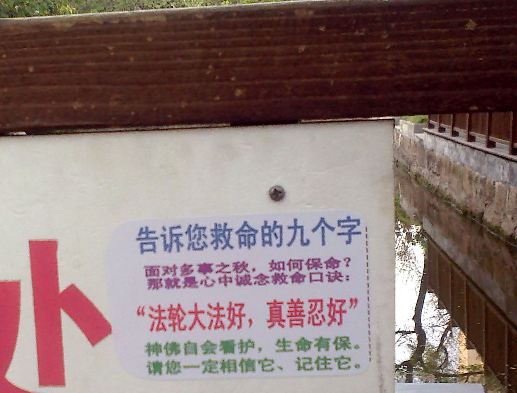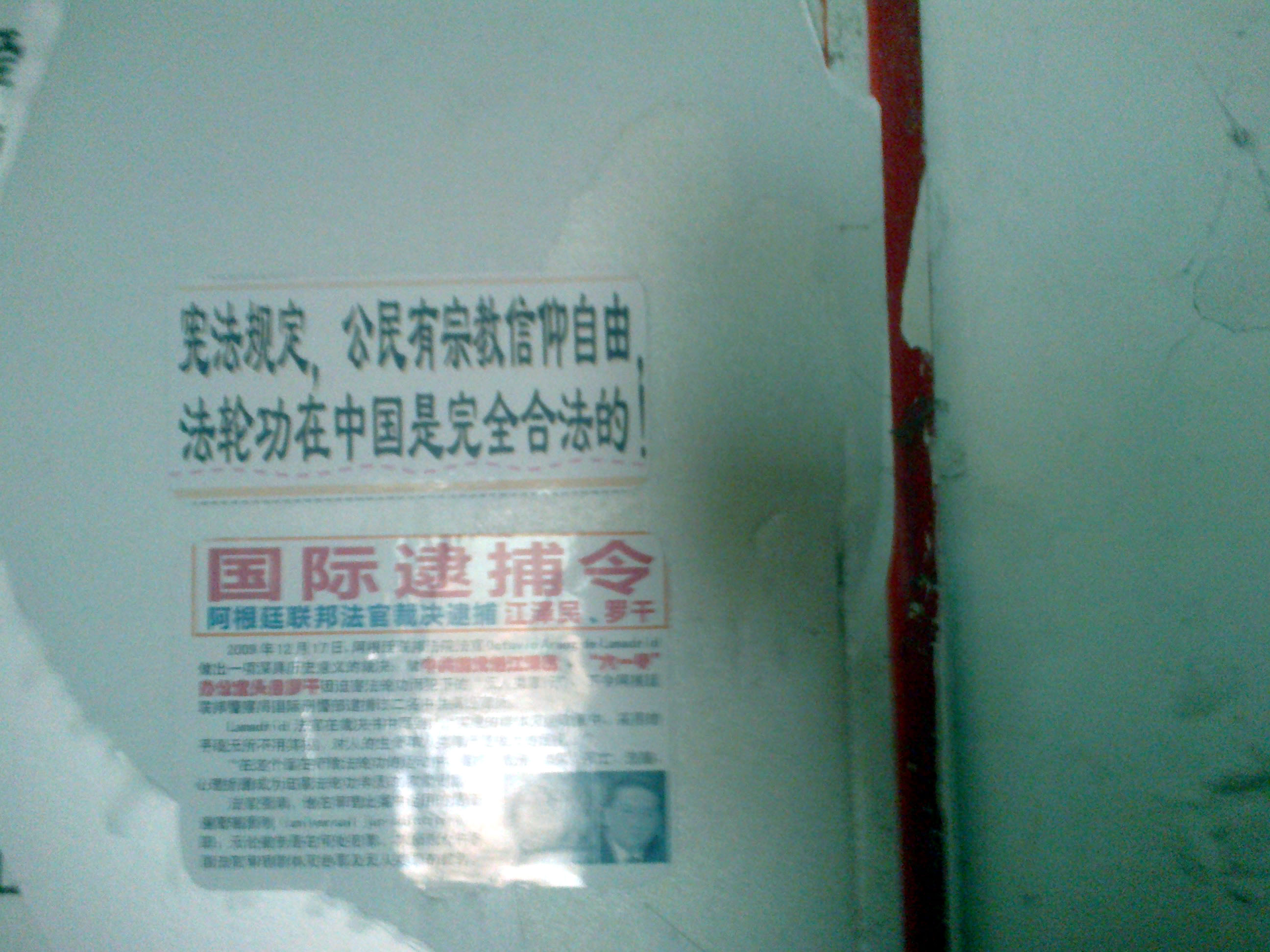 东北某地五月十三日随处可见法轮功真相条幅粘贴